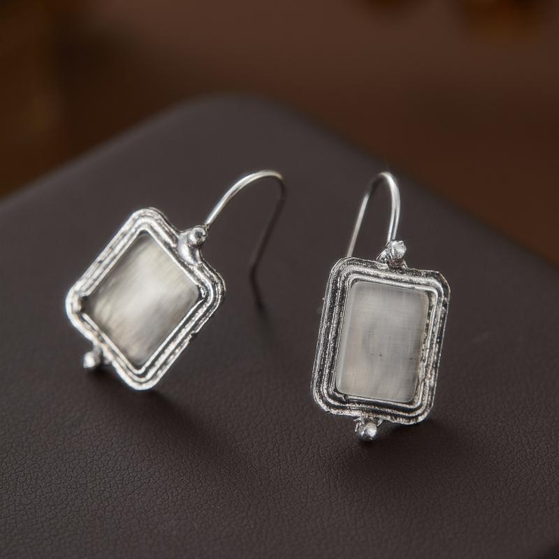 Vintage Luxury Simple White Stone Square Pendant Earrings for Women Exquisite Party Birthday Anniversary Gift