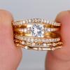 Round Stone White Zircon Engagement Ring Sets For Women 5pcs/Set Luxury Crystal Vintage Gold Color Wedding Jewelry Bridal Gifts