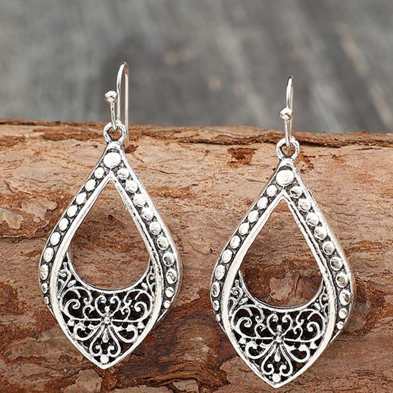 Para Minimalistycznych Winylowych Boho Metalowych Kolczyków z Wzorem Kwiatowym