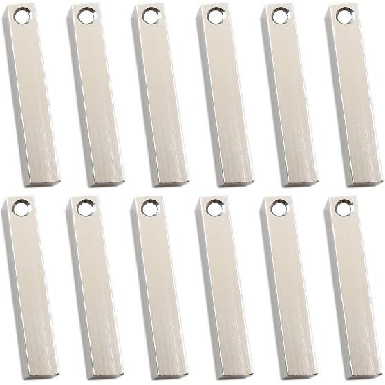ABBECIAO 12PCS Aluminum 3D Rectangle Stamping Blanks - 1 1/2" x 1/4" Solid Bar Pendants for Necklace Keychain Making