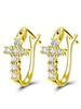 Charm Female White Zircon Stone Cross Hoop Earrings Gold Color Simple Wedding Jewelry For Women