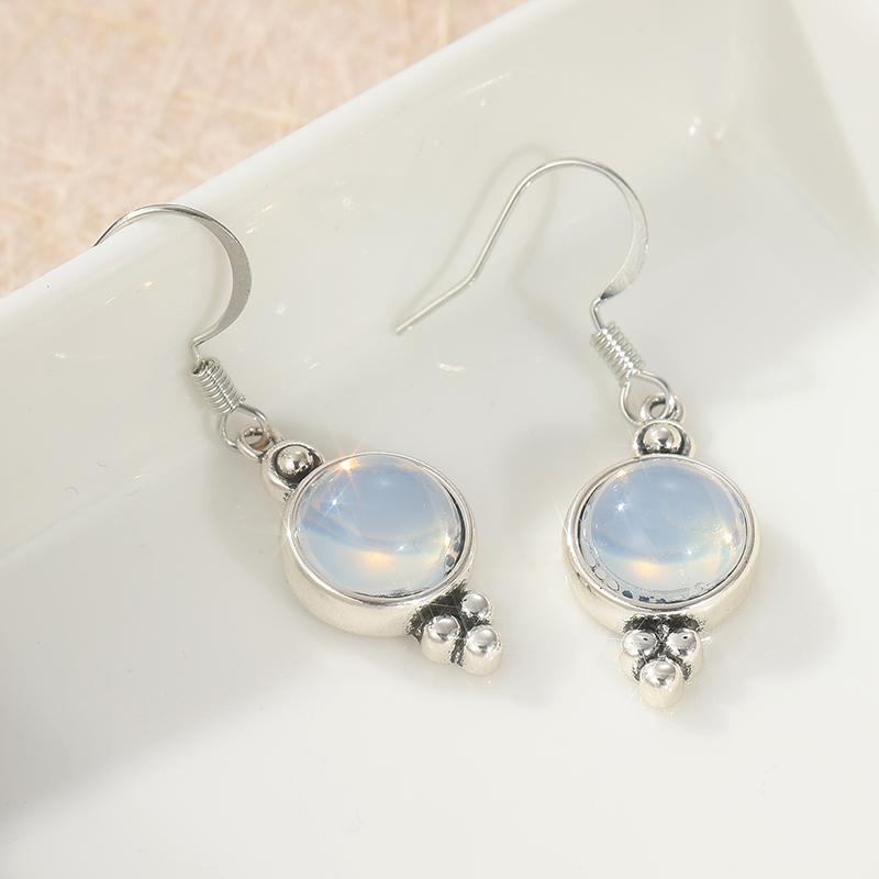 Vintage Okrągłe Wkładane Kolczyki Wiszące z Imitacją Kamienia Księżycowego Damskie Styl Etniczny Wiszące Sztyfty Bankietowe Ślubne Akcesoria Biżuteria