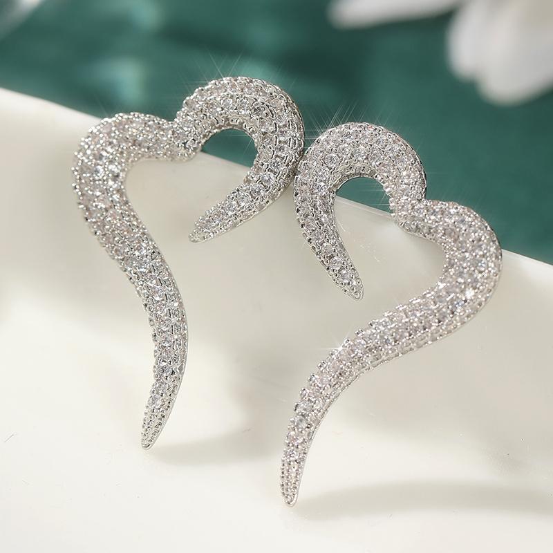 Sparking Synthetic Zircon Heart Shaped Stud Earrings for Woman Exquisite Jewelry Accessories Elegant Wedding Party Gifts