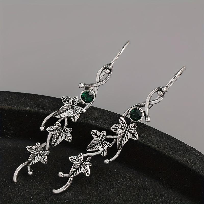 Vintage Ivy Elven Leaf Earrings For Women Silver Color Metal Crystal Earrings Female Custom Jewelry