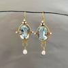 Vintage Round Synthetic Dark Green Crystal Pearl Golden Color Earrings Women's Creative Holiday Party Gift Pendant