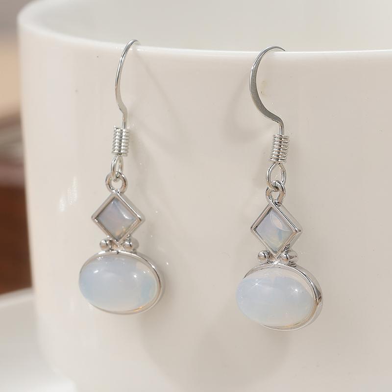 Concise Geometry Synthetic Moonlight Stone Dangle Earrings for Women's Elegant Exquisite Wedding Banquet Jewelry Pendant