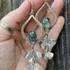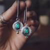 Jianjie Women's Dainty Two Tone Gourd Shaped Pendant Earrings Green Stone Inlay Classic Banquet Ear Jewelry Trend
