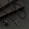 3pcs Set Men's Metal Cross Pendant Chain Necklace Bracelet Ring Jewelry Set Male Hip Hop Daily Wear Accessories