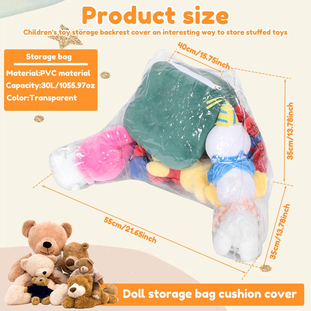 Clear Stuffed Animal Storage Back Pillow Cover PVC Waterproof Plush Toy Storage Backrest Cushion Cover 30L Clothing Storage Bag