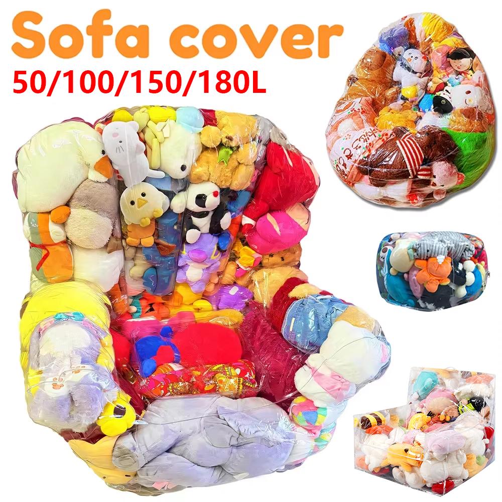 Clear Stuffed Animal Chair Cover PVC Waterproof Plush Toy Seat Cover with Zipper Large Capacity Clothes Doll Storage Organizer