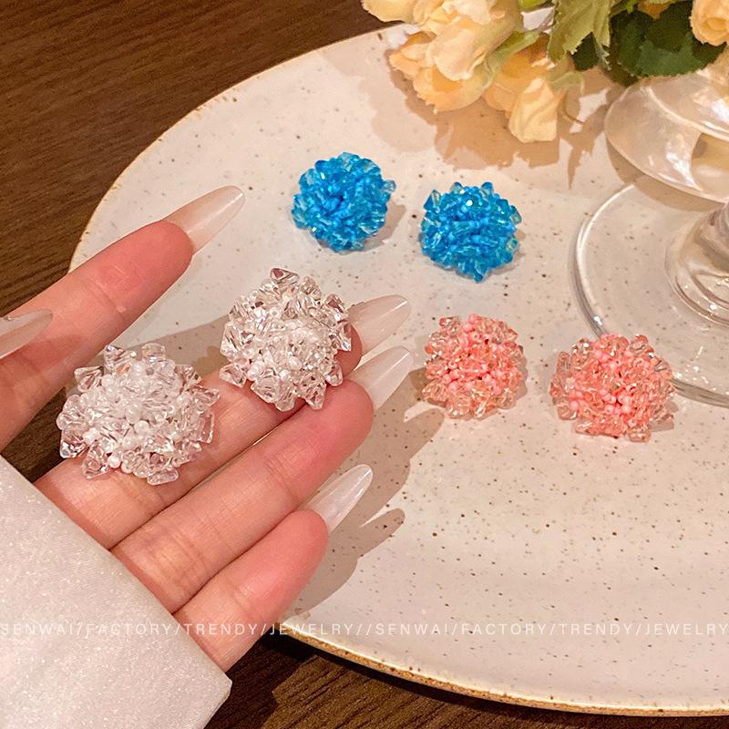 Holiday wind cool blue beaded hydrangea stud earrings women's earrings Internet celebrities show white ears