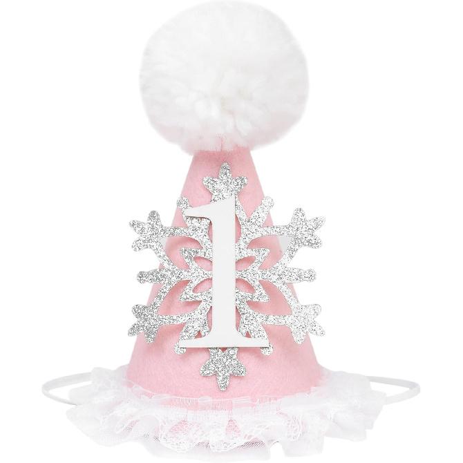 Winter Onederland 1st Birthday Hat - Pink Snowflake First Birthday Cone Hat, Winter Wonderland Party Supplies Decor for Girl, Snowflake Photo Props