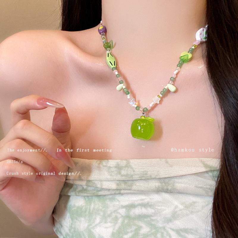 Mori green apple beaded necklace female design sense collarbone chain sweet accessories