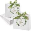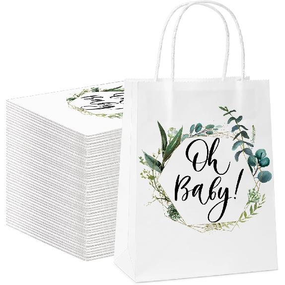 Fumete 50 Pcs Baby Shower White Paper Bags Bulk with Handles Greenery Eucalyptus Paper Bags Greenery Paper Goodie Bag Gift Wrap Bag for Baby Shower