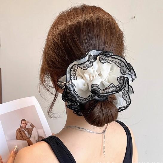 Lace edge super fairy large intestine hair band female court retro ponytail hair rope ball head hair accessories