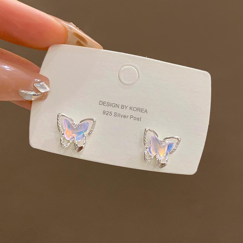 Gradually change blue and pink butterfly stud earrings female super fairy temperament girl heart sweet earrings personalized new earrings
