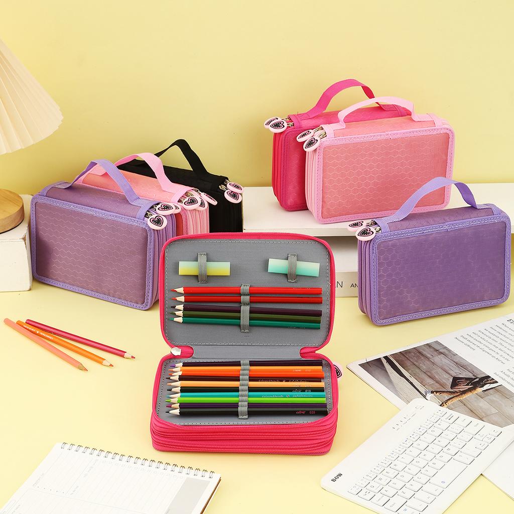 Heart-shaped zipper pull Three-layer pencil case, portable exquisite stationery storage bag, essential art drawing pencil case
