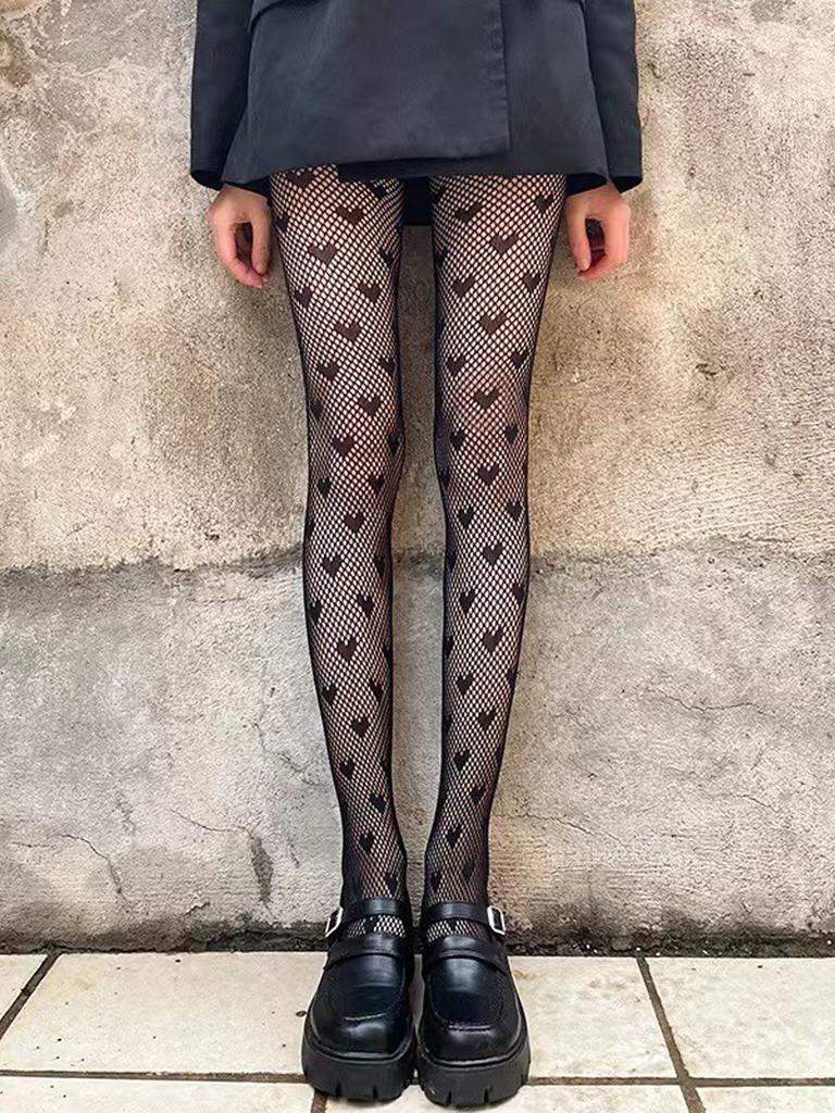A pair of women's fishnet love pantyhose fashion thin heart-shaped transparent tights