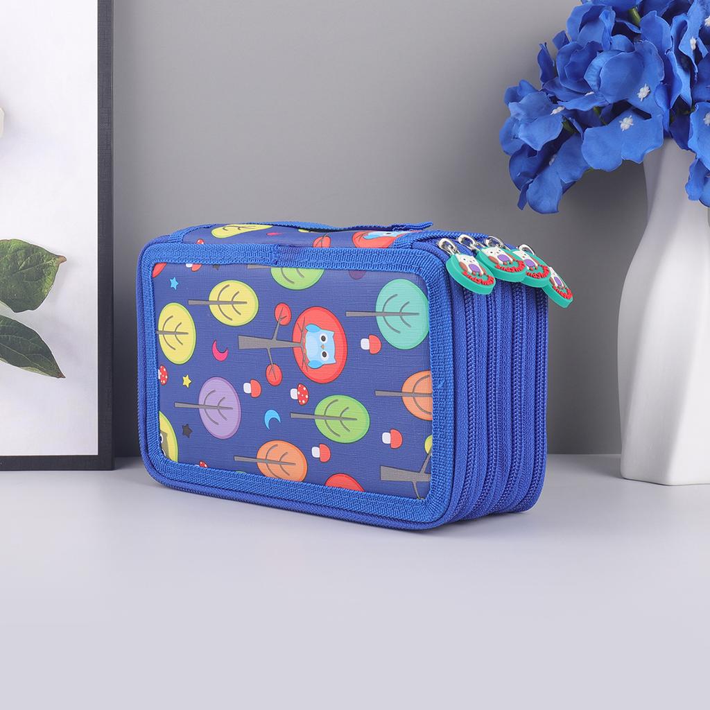 Cute owl shaped zipper pull Four-layer pencil case, portable exquisite stationery storage bag, essential art drawing pencil case