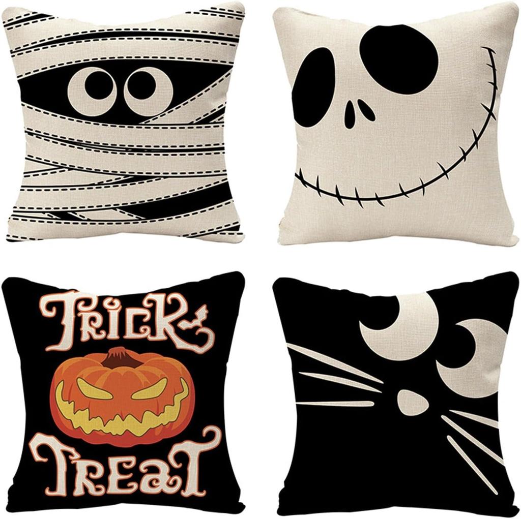 Spooky Halloween Pillows: Mummy, Skull, Trick or Treat, and Cat Eyes Designs! Sofa cushion cover, holiday party decoration, gift
