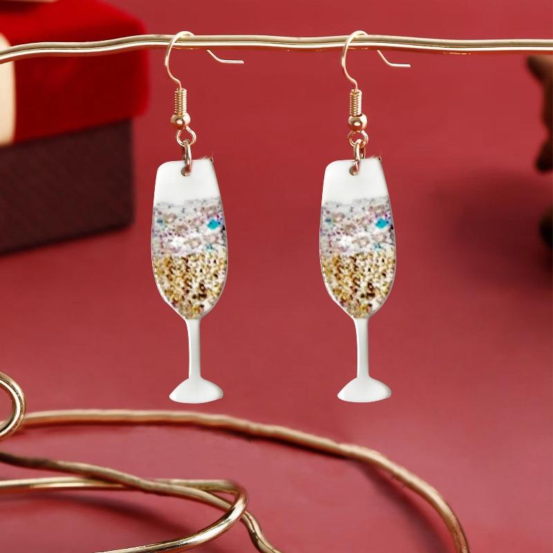 For beach wine glasses, earrings, earrings, acrylic material, single-sided printing, vacation travel, seaside beer carnival