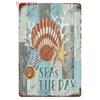 Vintage Sea Turtle Decor, Sea Snail, Metal Tin Sign, Nautical Beach Ocean Theme, Retro Seaside Underwater Summer Plates, WY283