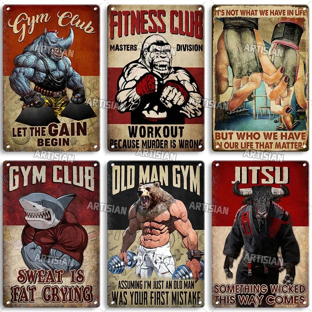 Old Man Gym Club Inspirational Phrase Art Painting Wall Plate Decor Vintage Tin Sign Fitness Garage Room Decoration Metal Signs