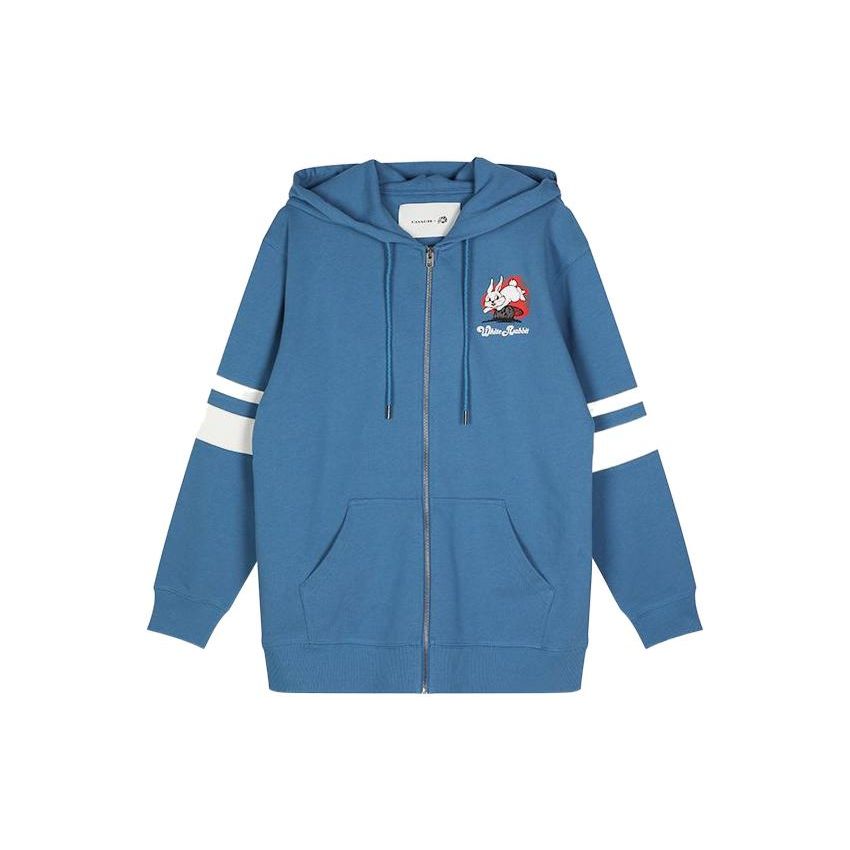 Coach X White Rabbit Striped Cartoon Print Zipper Hoodie Unisex Hoodies Mixed-Blue CG263-BL