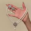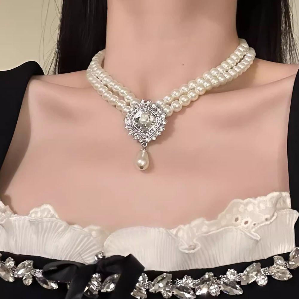 Baroque Style Bridal Jewelry Set Rhinestone Pearl Necklace Water Drop Necklace Earring Set Girls