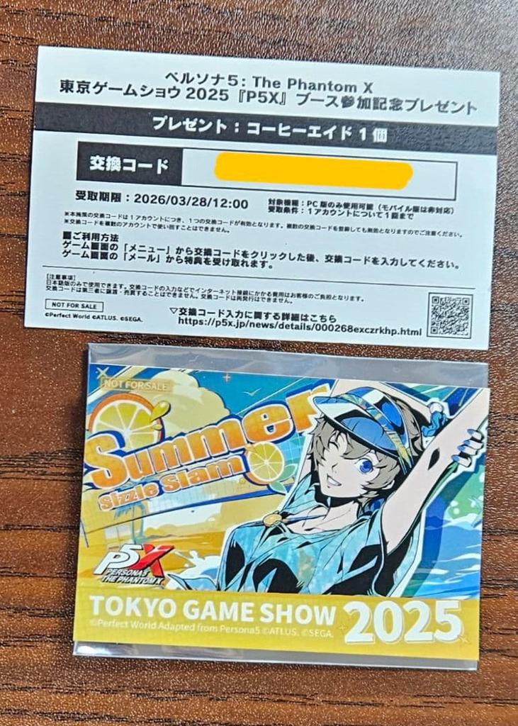 [USED] Tokyo Game Show 2025 P5X Bonus Sticker (with serial code)
