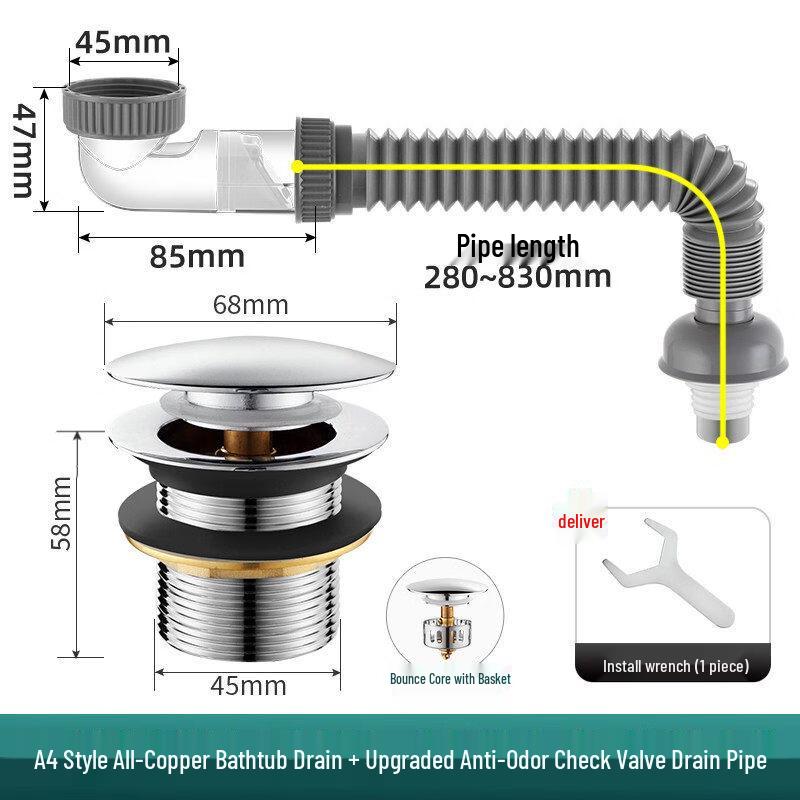 Zestaw odpływowy do wanny TLXT z korkiem typu pop-up i rurą zaworu zwrotnego