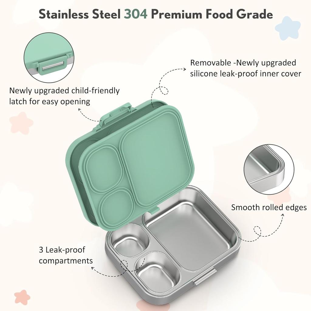 Stainless Steel Bento Box Kids, Leak Proof Metal Bento Lunch Box,3 Compartments 304 Stainless Steel Bento Lunch Containers for School and