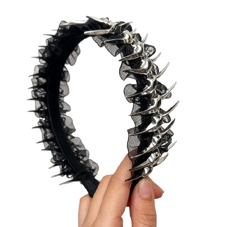 Subcultures Gothic Hairband with Metallic Spine and Lace Trim Decors Heavy Metal Styles Headpiece For Dance Performances