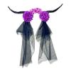 Halloween Hairhoop with Antelope Horn Dark Series Flower Headband with Veil Theme Party Headwear Festival Props Hairband