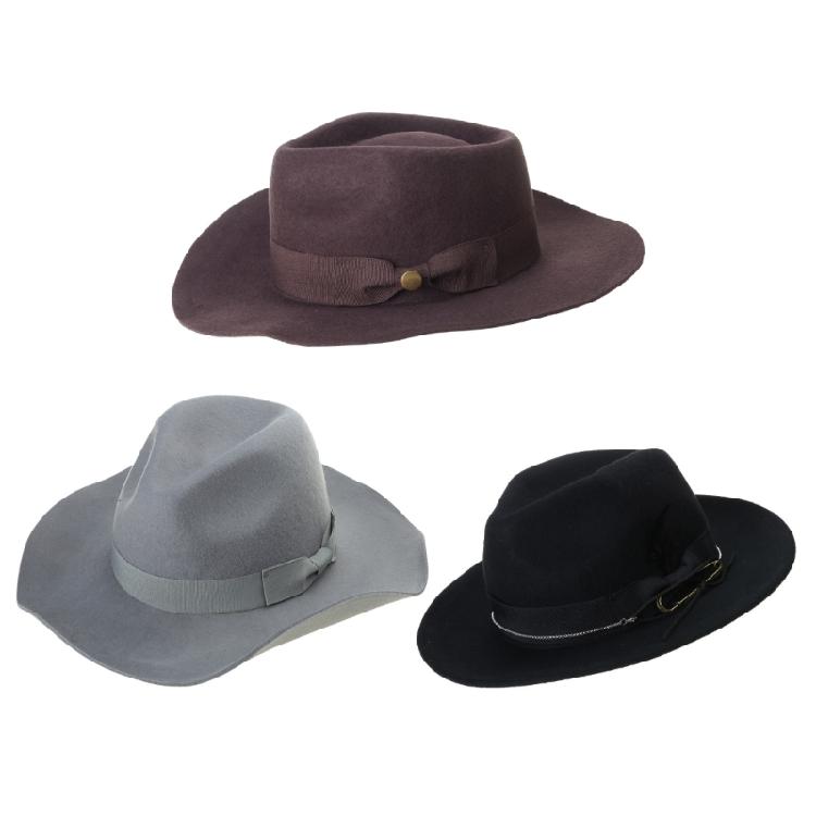 Kapelusz wełniany vintage z plecionym paskiem z wstążki dla dorosłych.