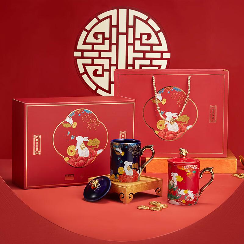 JINGREPUBLIC Zestaw Ceramicznych Kubków z Królikiem Pieniążków z Pokrywkami