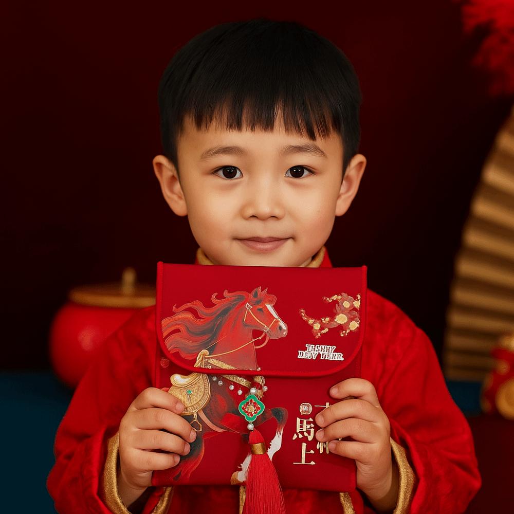 Traditional Chinese New Year Red Envelope Hongbao Tassel Children's Money Bag Horse Brocade Embroidered Thickened