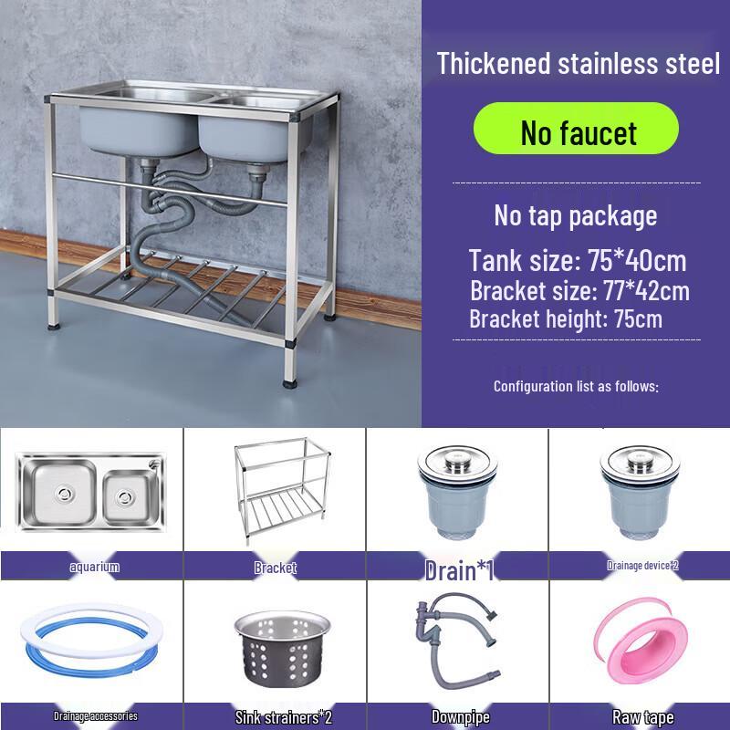 CHENDU 304 Stainless Steel Double Sink with Stand, 7-Piece Set