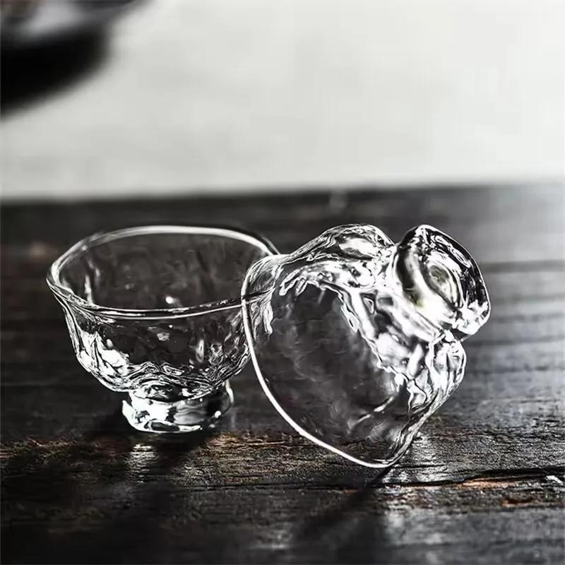 2Pcs/Lot Japanese Hammer Pattern 60ml Small Capacity Glass Tea Cup Tea Appreciateing Cup Kung Fu Tea Accessories Crystal Tea Cup