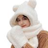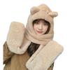 3 in 1 Girl Scarf Bear Hat Furry Caps Scarf with Gloves Set Winter Warm Headgear for Casual Outdoor Wear