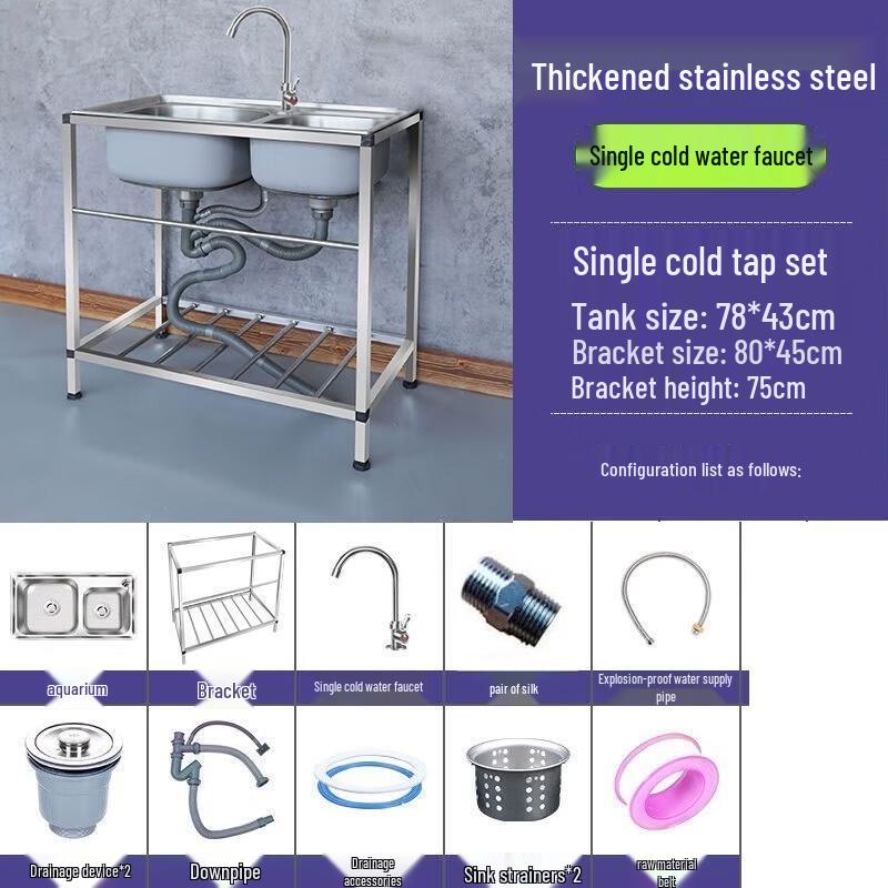 CHENDU Stal Nierdzewna 304 Podwójna Komora Zlewozmywakowa ze Stojakiem, Zestaw 13-elementowy
