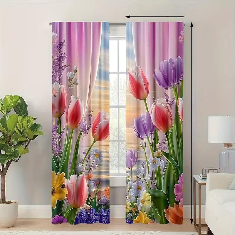 2 Pcs Colorful narcissus print curtains,suitable for bedroom,living room kitchen decoration,home decoration,window decoration