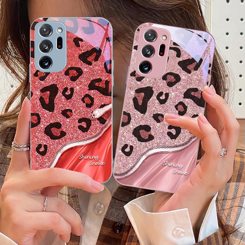 Etui na telefon z hartowanego szkła Wzór Pantera Sequins Wąż Dla Samsung Galaxy Note 8 9 10 PRO 20 Ultra A01 02 03 Core 04E 4G 12 13 5G