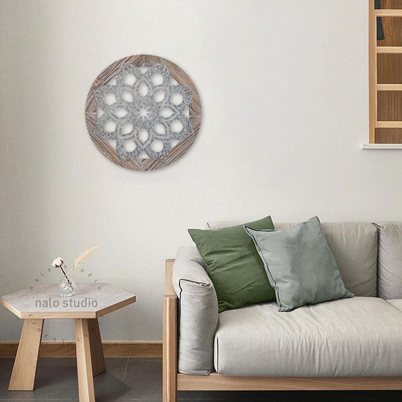 Pogrubiona Rustykalna Dekoracja Ścienna Okrągła Rzeźbiona Kwiatowa Boho Art Dekoracja Okrągła Rustykalna Sztuka Ścienna Nowoczesna Dekoracja Do Sypialni Łazienki