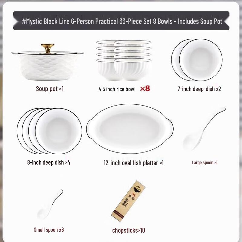 Creamy Style Enamel Dinnerware Set - 33-Piece, 6-Person