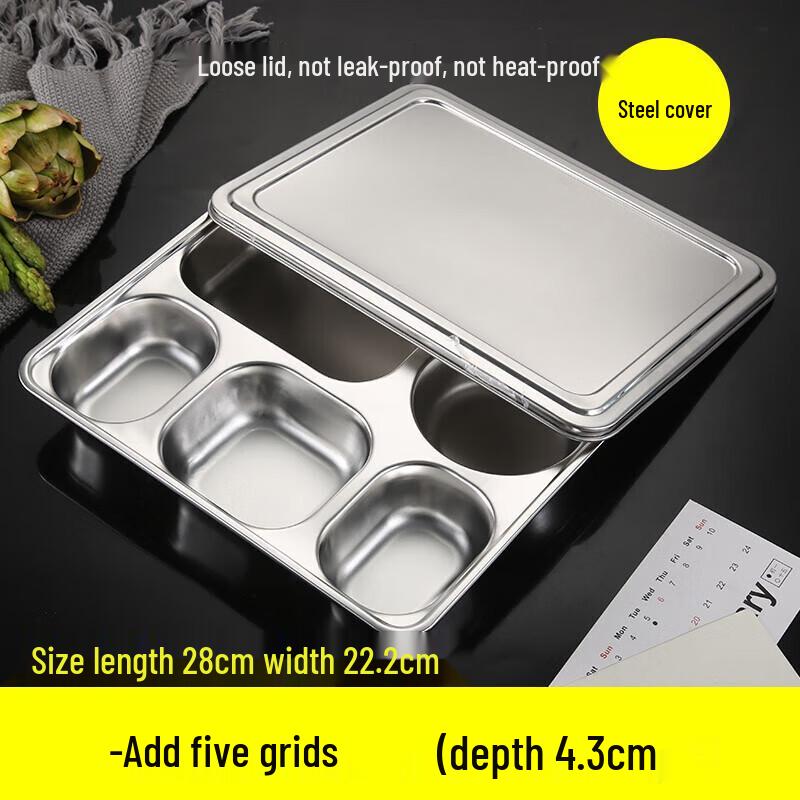 304 Stainless Steel 5-Compartment Deep Meal Tray with Lid
