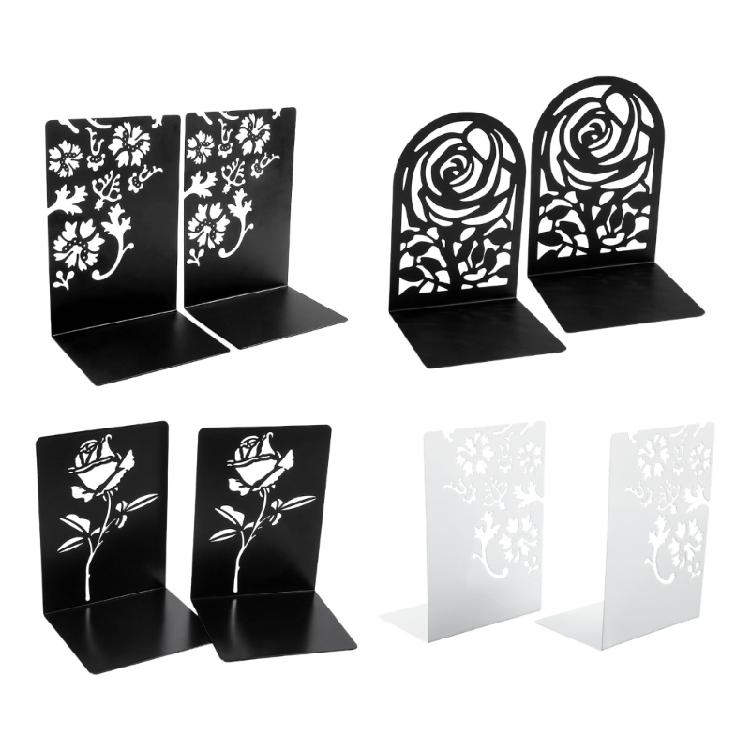 Crafted from metal, light in inweight, rustproof, good durability, better stability, ensuring long service life. These sace saving bookends L shape book ends feature hollowed flower or keyboard pattern that adds elegant touch to your desk decoration.