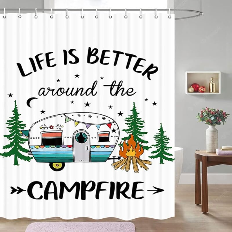 Camper Shower Curtain Material: Made of durable, polyester, soft