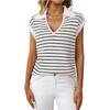 Women's V-neck Knitted Top Casual Striped Sleeveless Lapel Sweater
