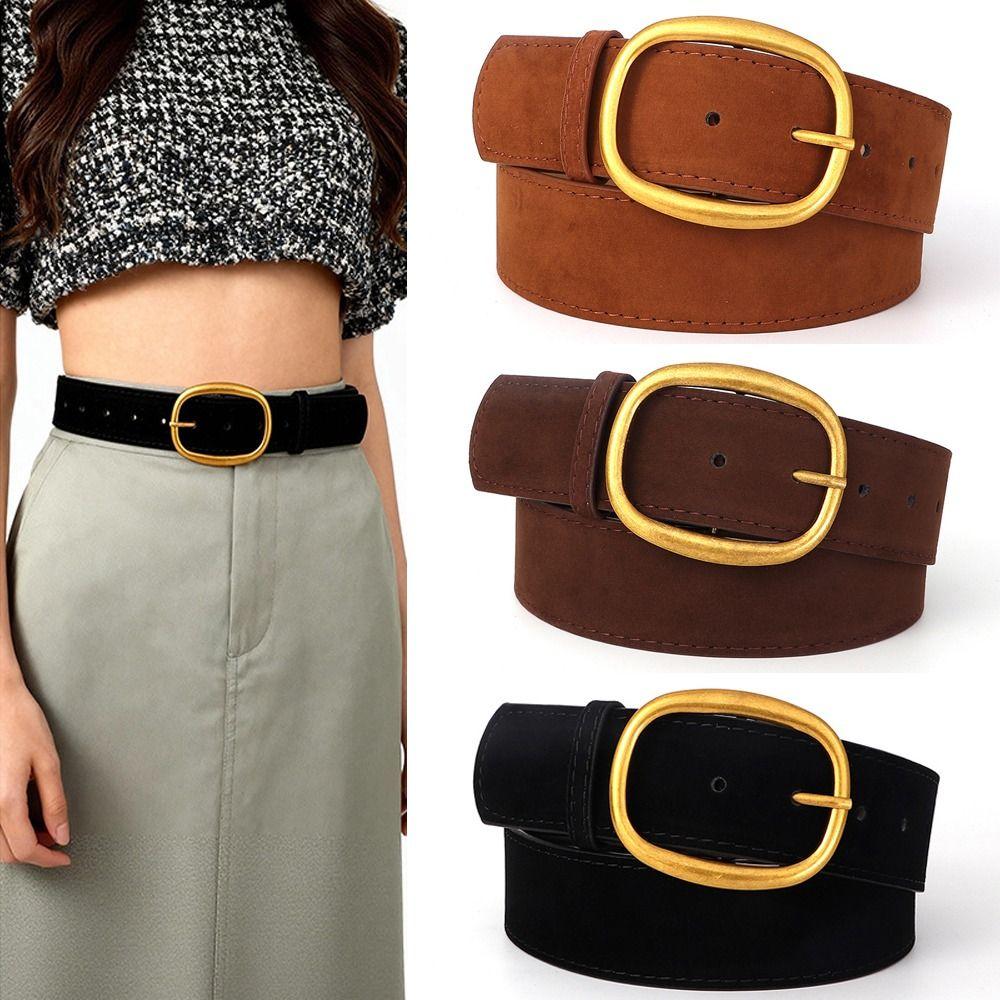 Pin Buckle Suede Leather Belt Luxury Design Wide Waistband Women Waist Belt Coat Skirt Decoration